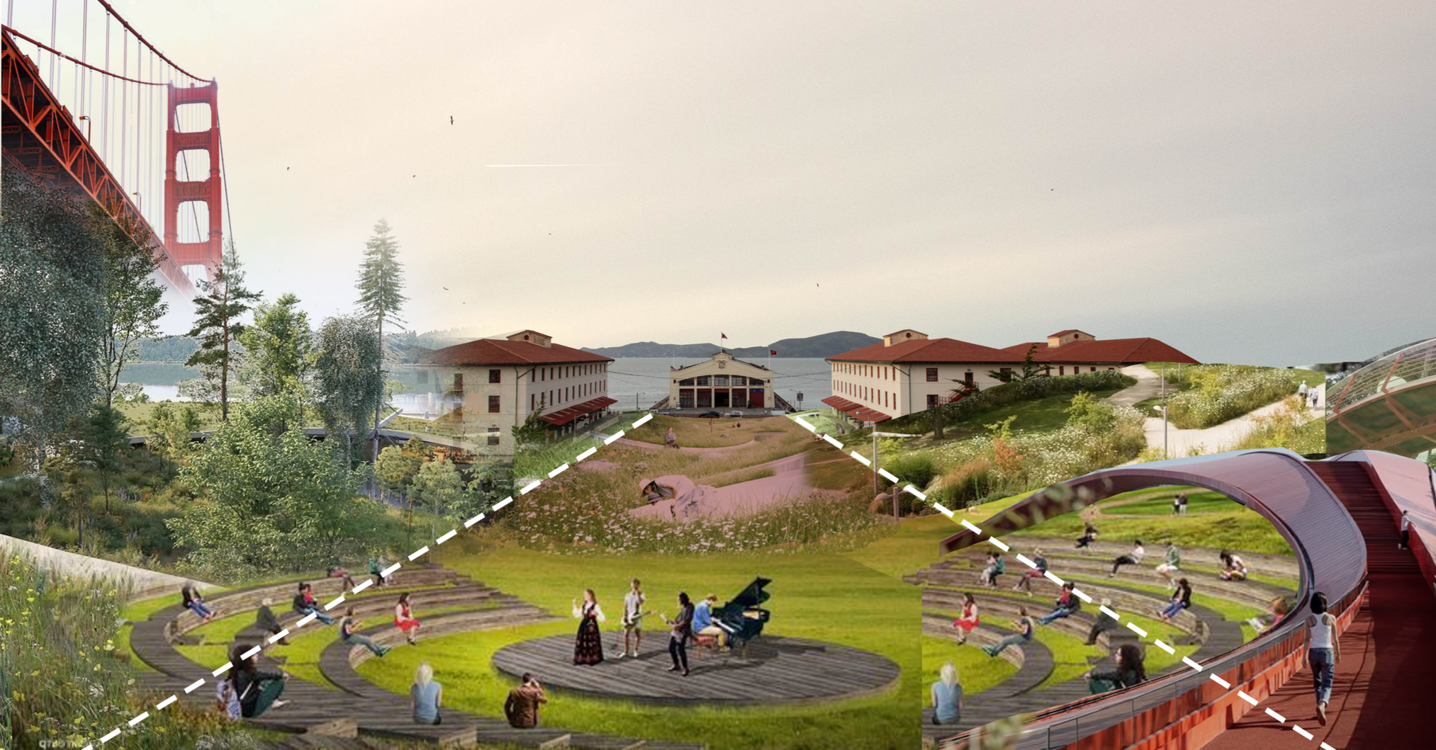 The project aims to blur this division by using a theater as a catalyst that repositions Fort Mason as a cohesive destination rather than a series of disconnected zones. Through its placement and sectional strategy, the building operates as both an anchor and a mediator, negotiating scale, visibility, and movement across the site. The proposal contends with how a new intervention can emphasize and frame the existing Fort Mason buildings without overshadowing them, while simultaneously improving wayfinding and circulation between Upper and Lower Fort Mason, allowing cultural life, movement, and landscape to interweave more fluidly.